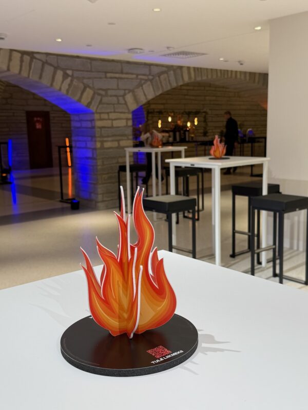 Seekordseks lahenduseks said LED valguskastid, mis aitasid kujundada ühtse visuaaliga toimumispaiga Eesti Rahvusraamatukogus ning Metroprindi plaadijääkidest valmistatud lauapealsed lõkked QR koodidega, mis viisid täpsema teabeni konverentsist.